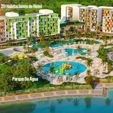 El complejo ofrece una propuesta de amenities de primer nivel, inspirados en el espíritu lúdico de Nickelodeon: amplias piscinas temáticas, áreas de juegos acuáticos, spa, gimnasio, espacios gastronómicos, zonas de entretenimiento familiar y servicios de resort que garantizan una experiencia única tanto para los huéspedes como para los propietarios.